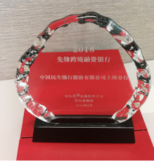 民生银行上海分行荣获《国际金融报》“2018先锋跨境融资银行”奖